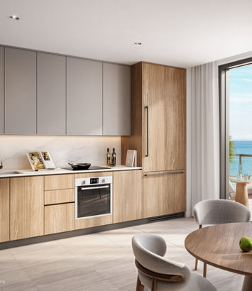 • Indulge in a chef’s kitchen with a European-style, fully integrated appliances by Bosch, SMEG, and Fischer & Paykel including refrigerator, oven, induction cook-top, speed oven, and dishwasher.