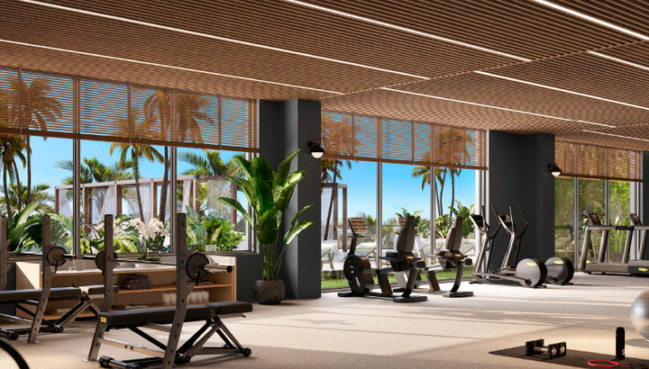 • State-of-the-art fitness center fully-equipped with Technogym with view of resort pool area